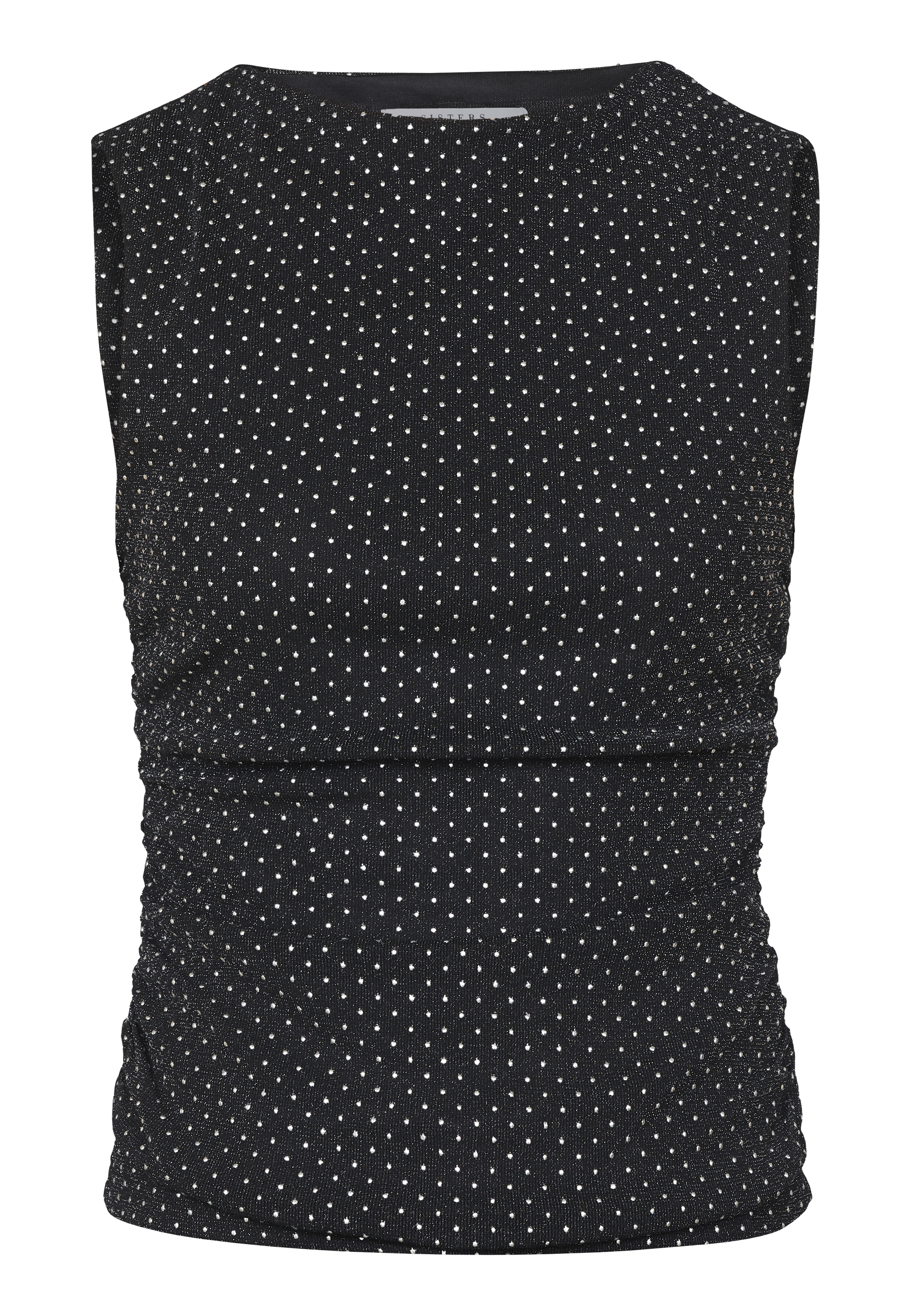 Esme toppen kommet med en kombination af sort og sølv, hvilket tilføjer denne top et strejf af glamour til ethvert outfit. Designet med et normalt fit, sikrer den både komfort og en flatterende silhuet.