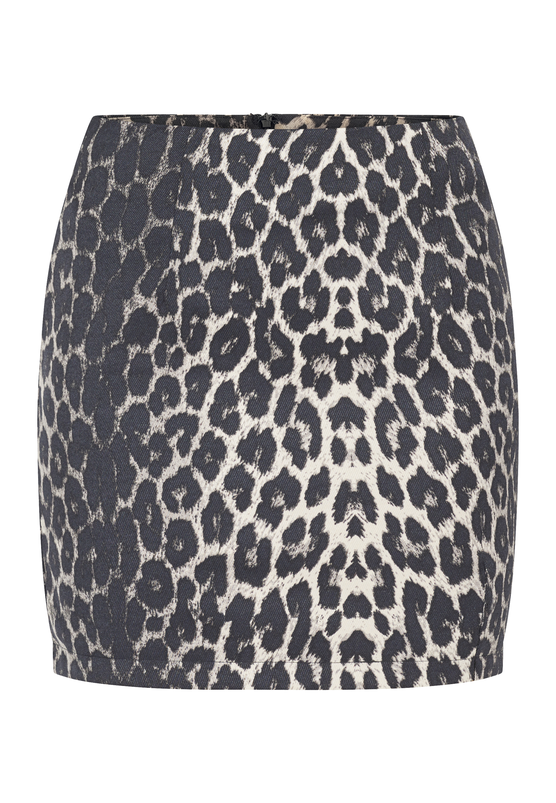 En kort leopard mønstret nederdel med lynlås bagerst og to små indsnit forrest, der giver nederdelen en perfekt pasform.