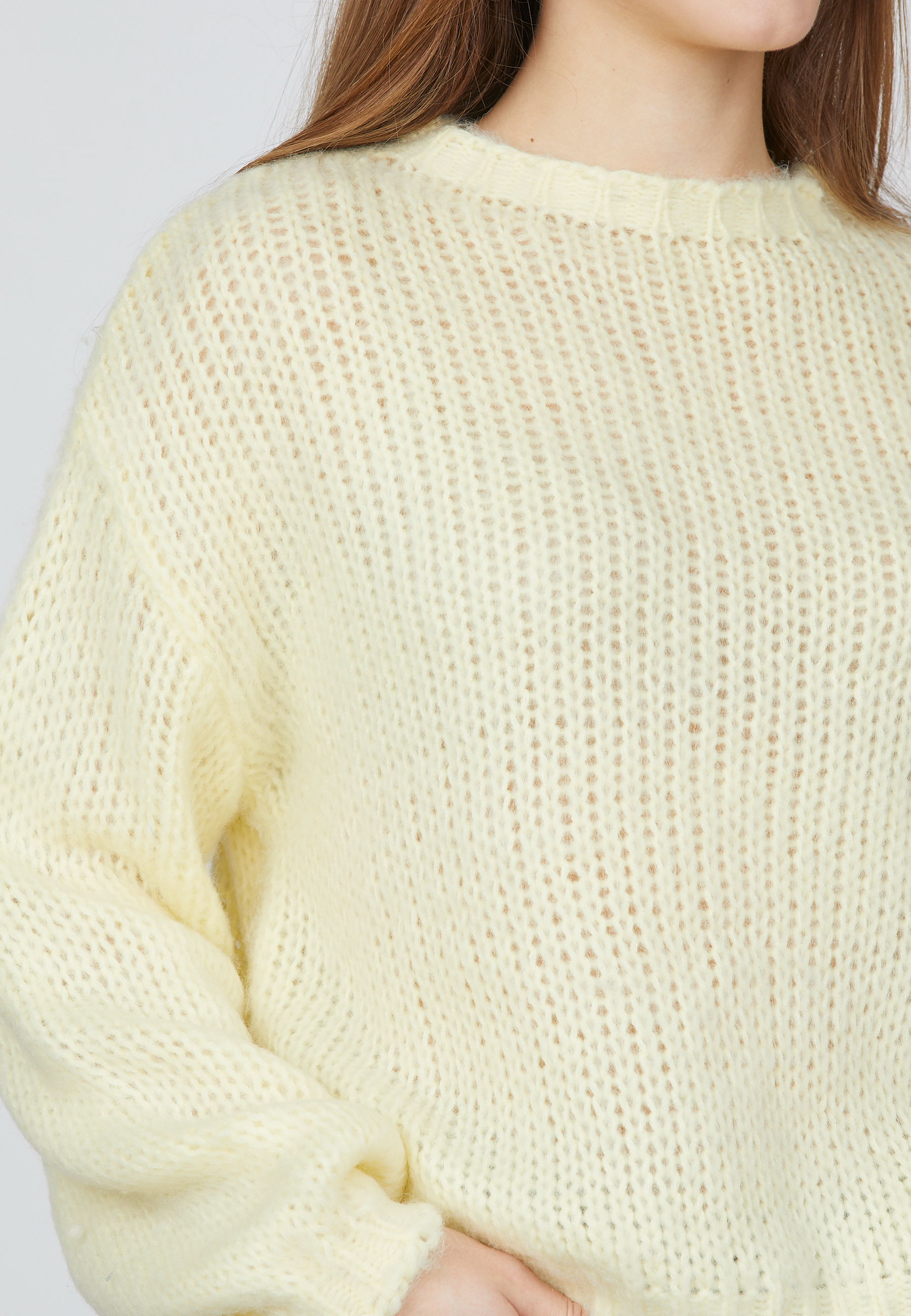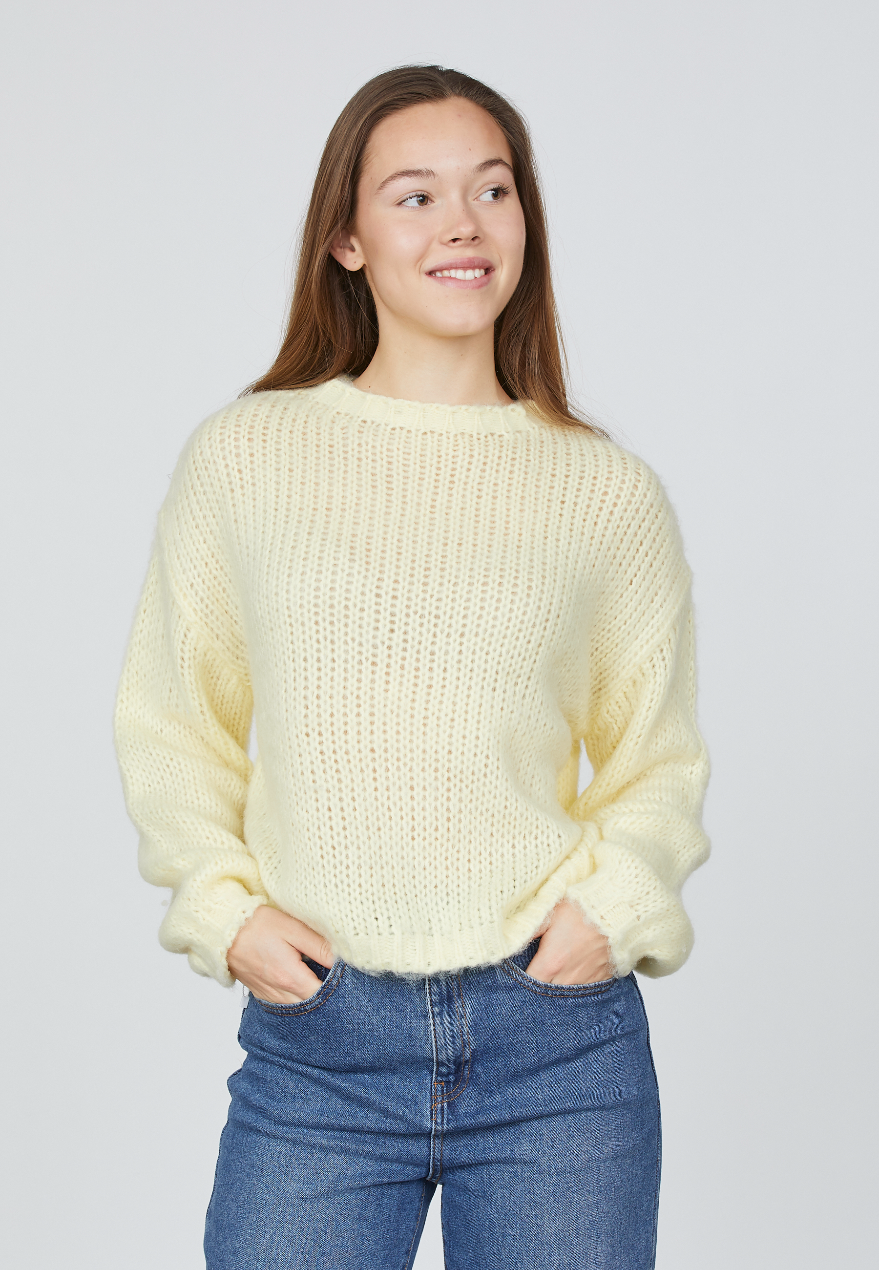 Lidar strikken er en blød og komfortabel strik i den skønneste lysegule nuance, der giver et frisk pust til garderoben. Den har en rund halsudskæring, løse ærmer og en afslappet pasform, som gør den nem at style til både hverdag og hyggelige anledninger.