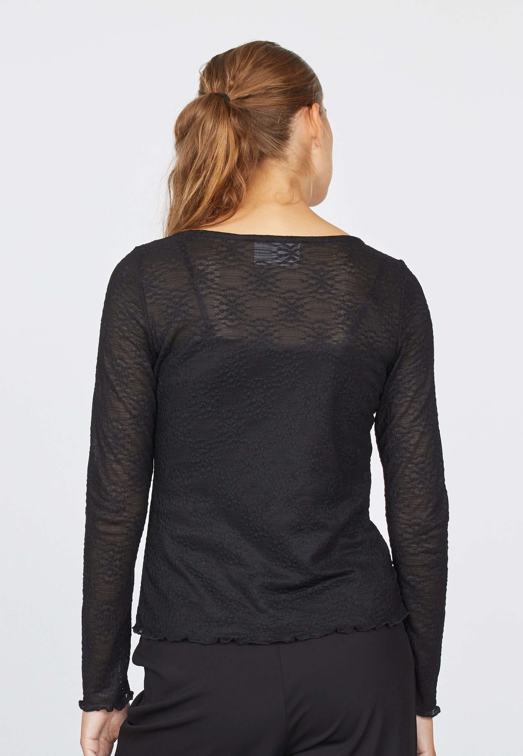 Stoffet giver gennemsigtighed, så blusen kan med fordel styles med en top indenunder.
