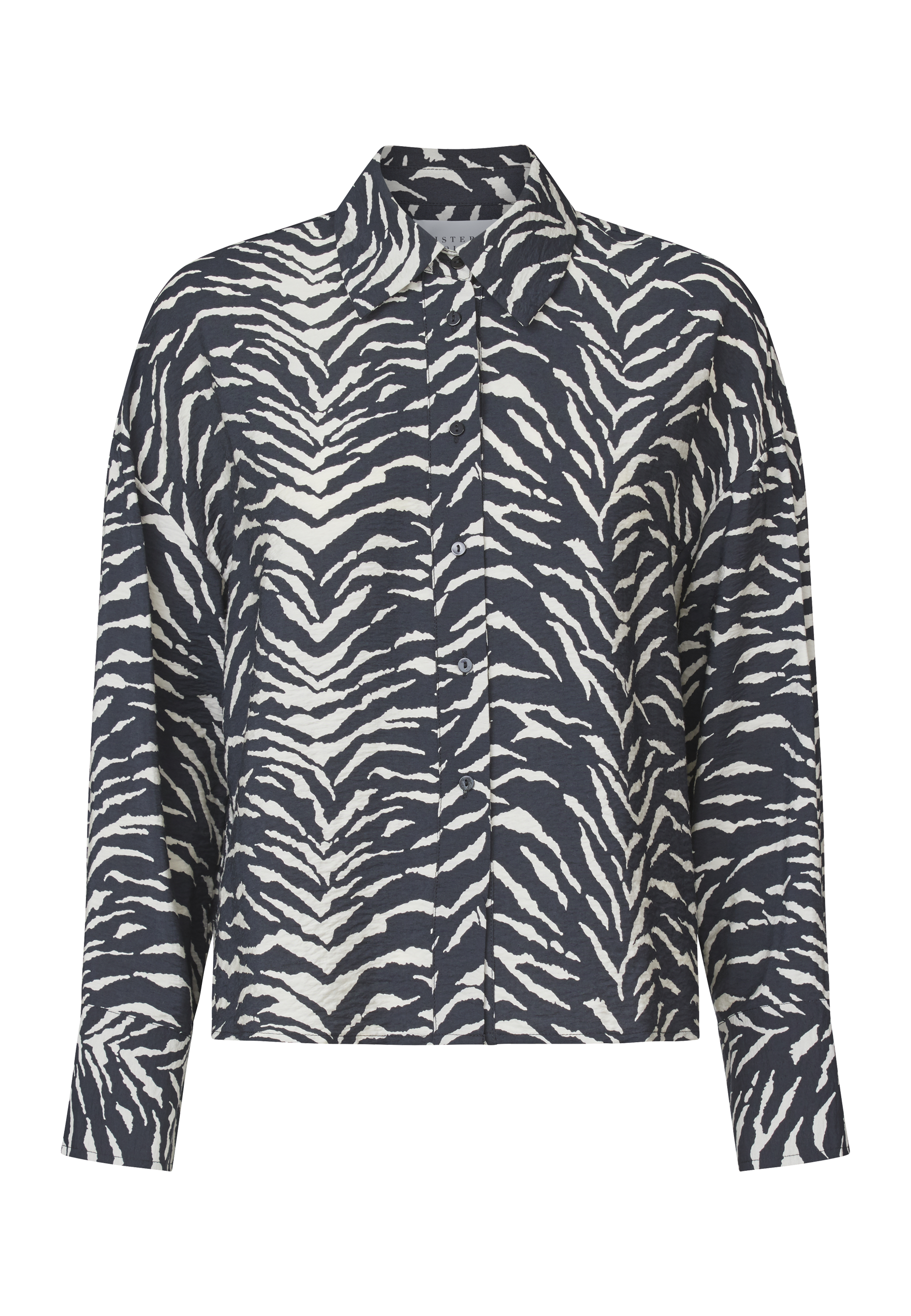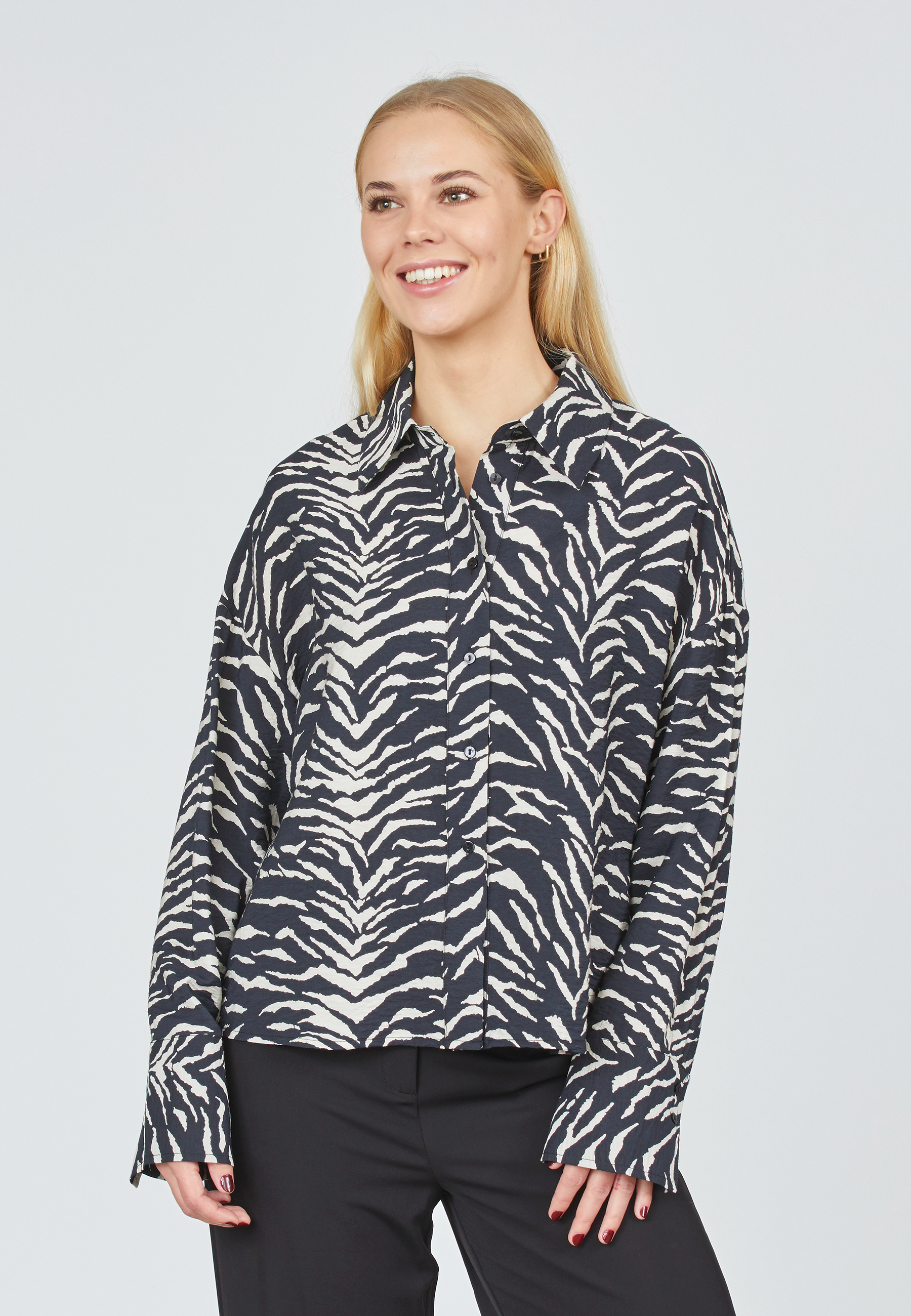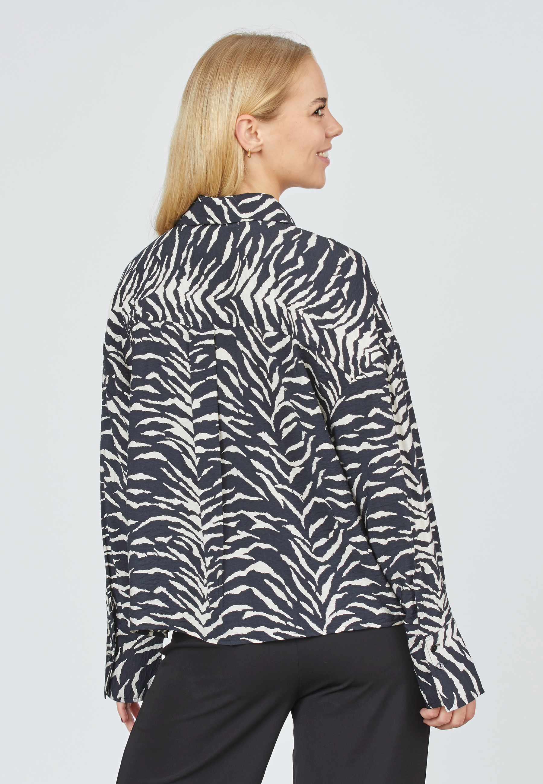 Klassisk skjorte fra Sisters Point i zebraprint med krave og knappelukning. En stilfuld skjorte, der nemt kan bruges både til hverdag og fest.