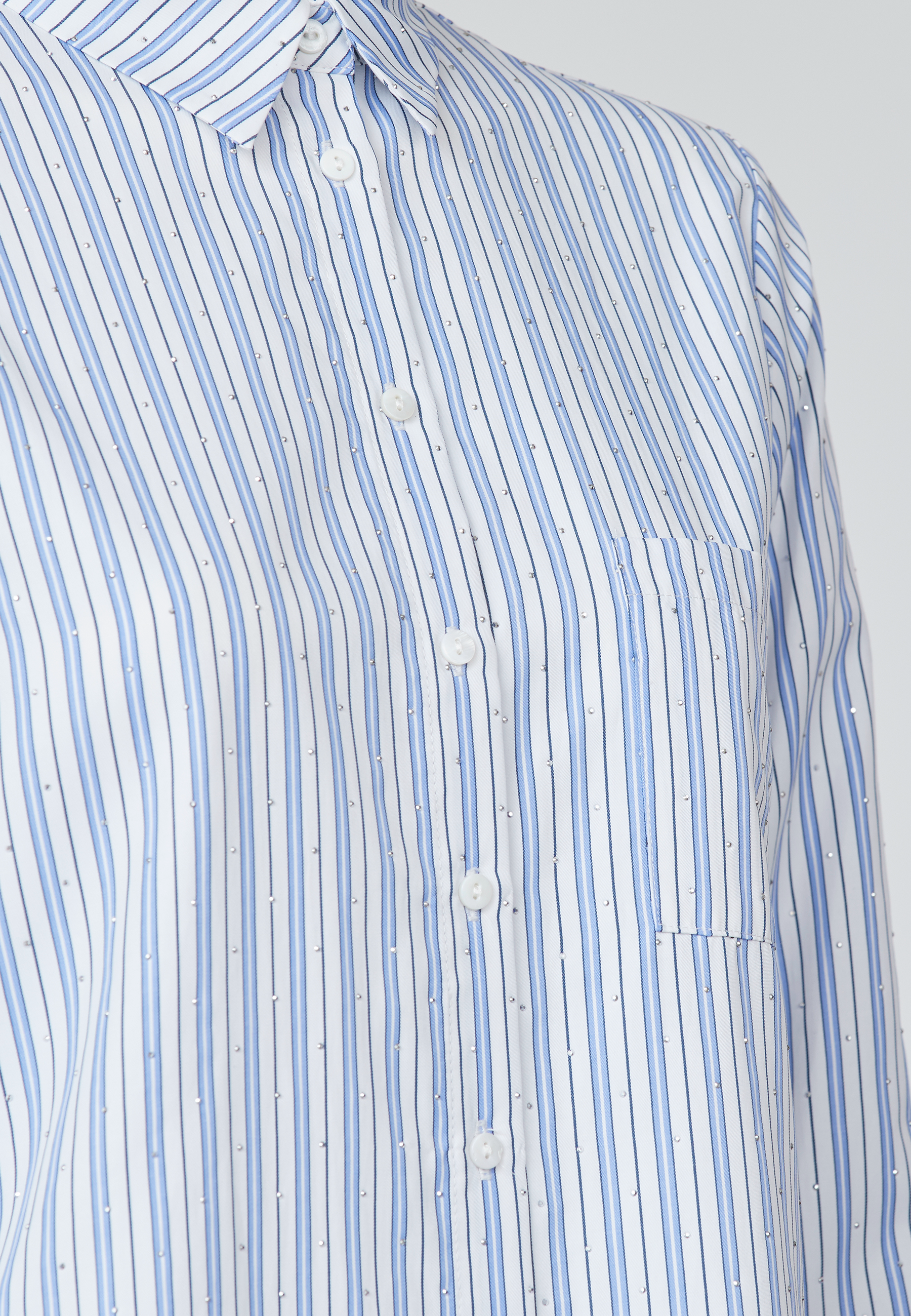 En cool skjorte med rhinsten og slids i siderne. Den har klassisk snit og venstre brystlomme, og passer perfekt til både hverdag og mere festlige looks.