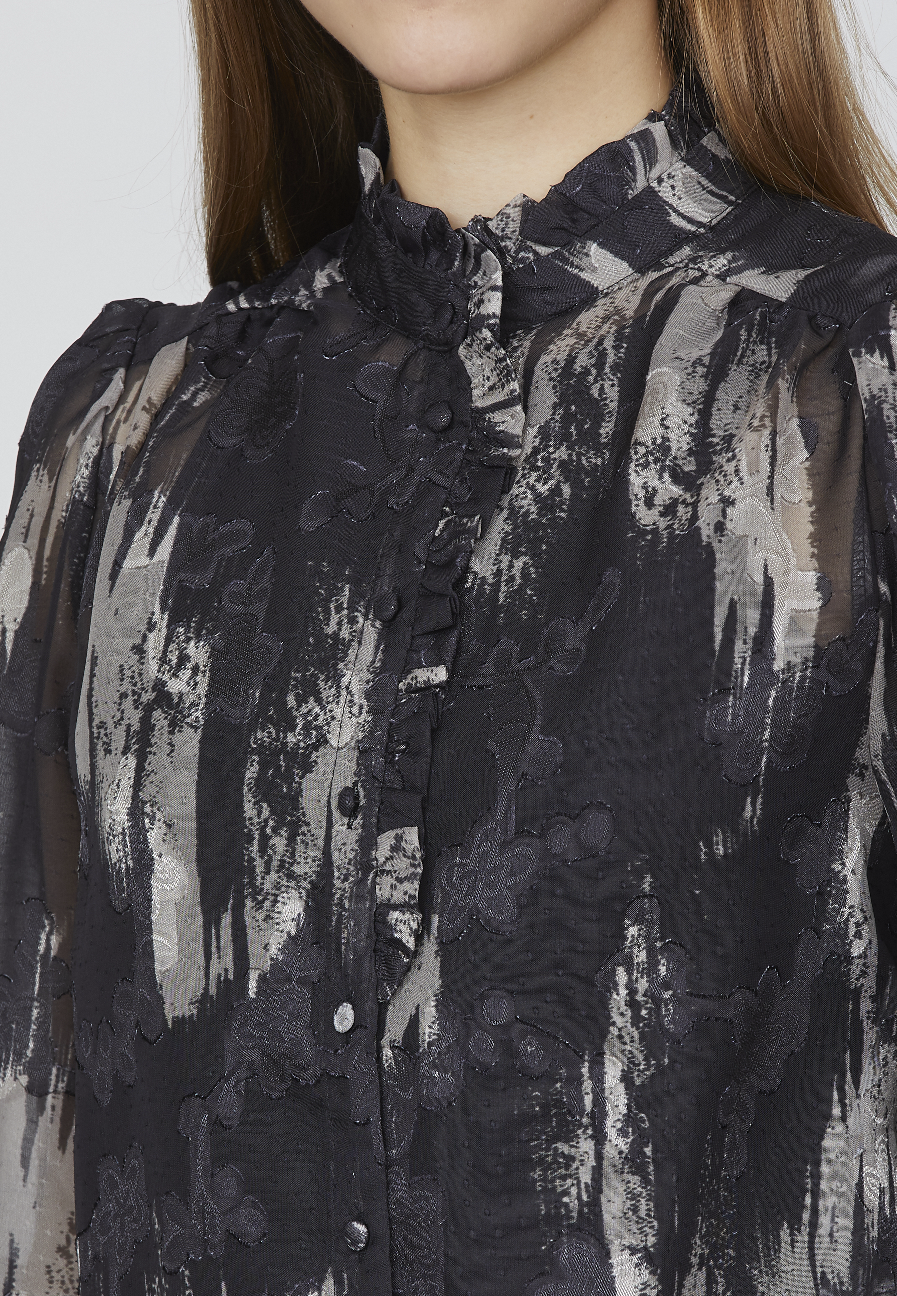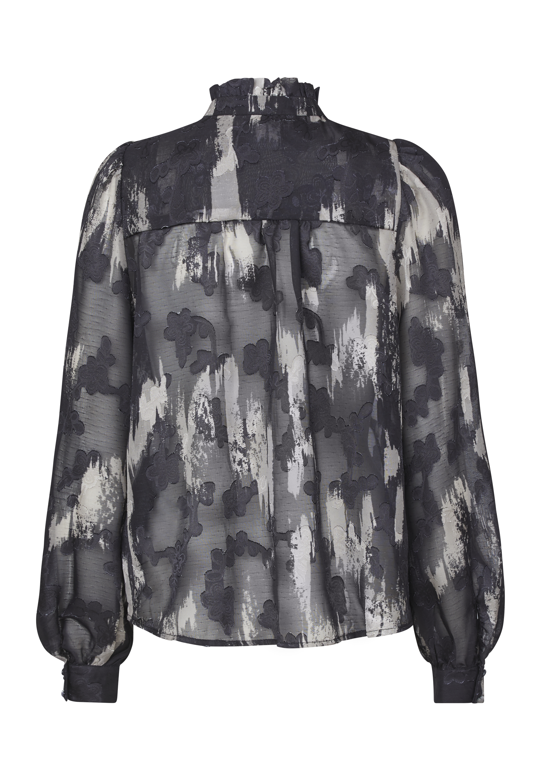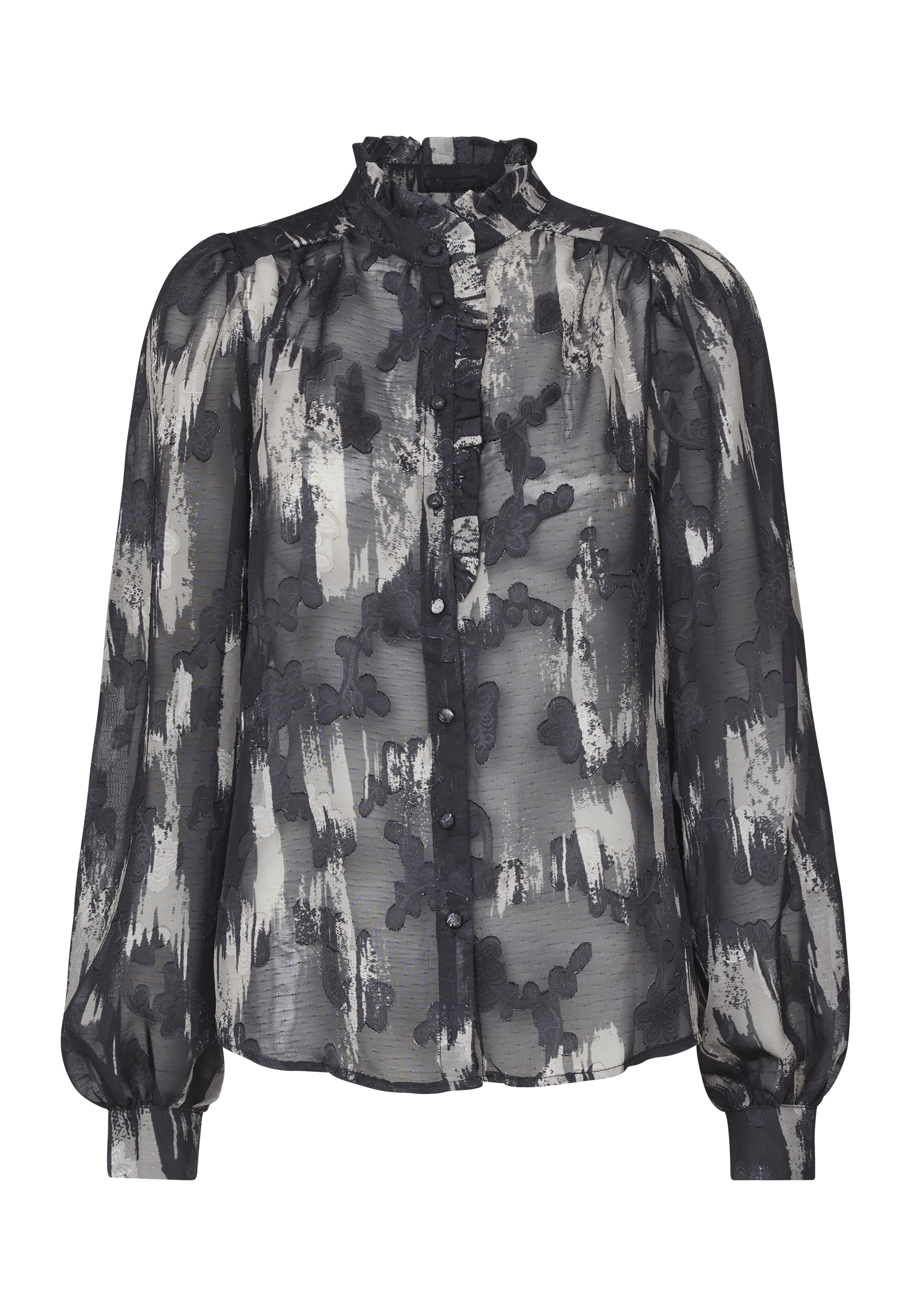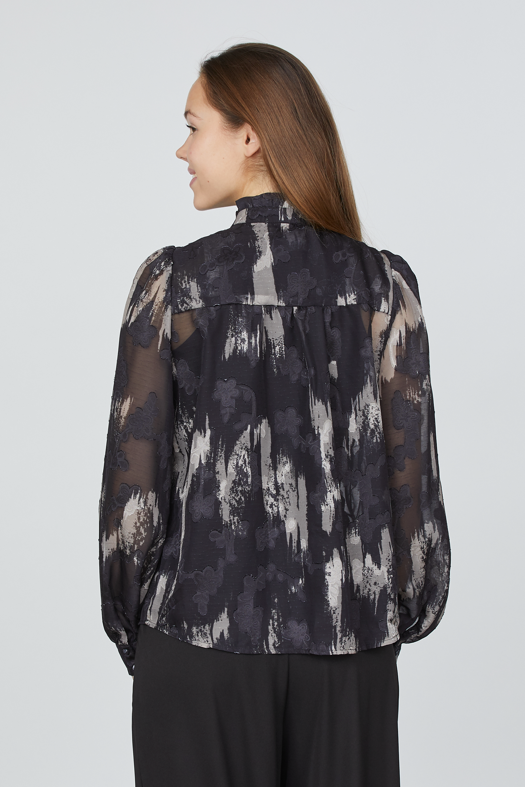 Opdag tidløs elegance med denne gennemsigtige skjorte fra Sisters Point, der kombinerer et smukt, detaljeret mønster med moderne snit. Skjorten er designet med fine knapper og en lille, klassisk krave, der tilføjer et sofistikeret og feminint touch. Den gennemsigtige kvalitet skaber en let og luftig følelse, perfekt til lag-på-lag styling eller som som den er.