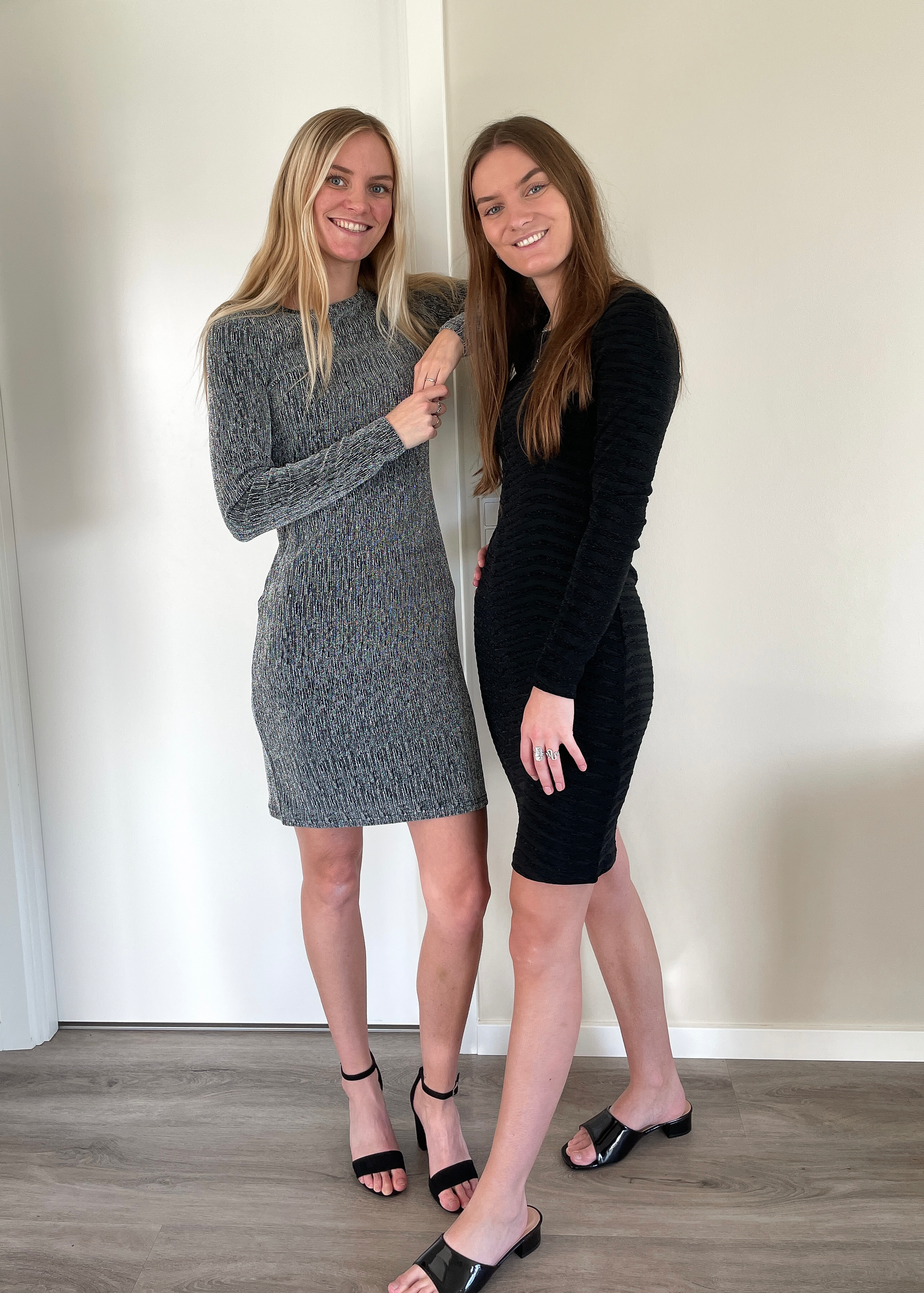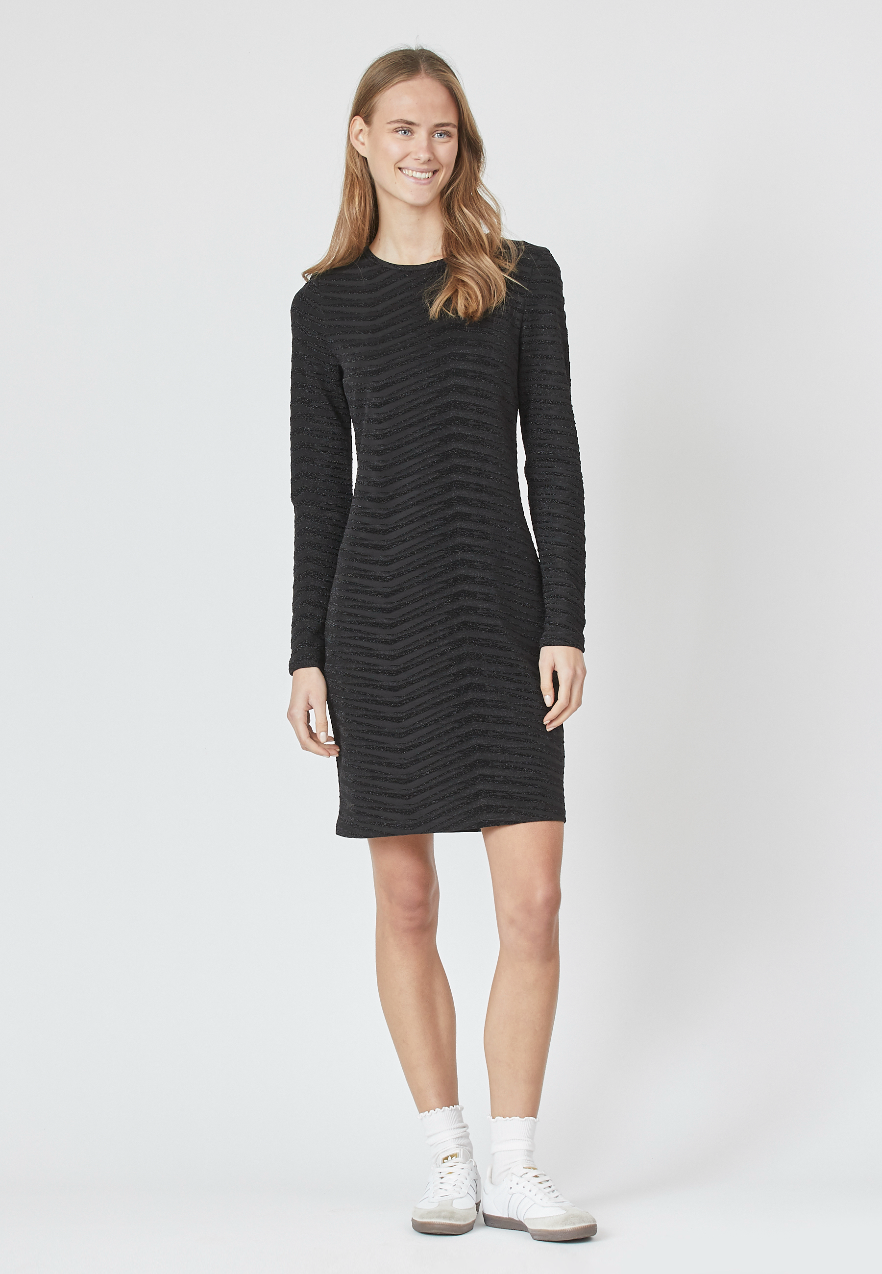 En virkelig fin og festlig kjole med lange ærmer og glimmertråde. Kjolen er tætsiddende og tro mod størrelsen.